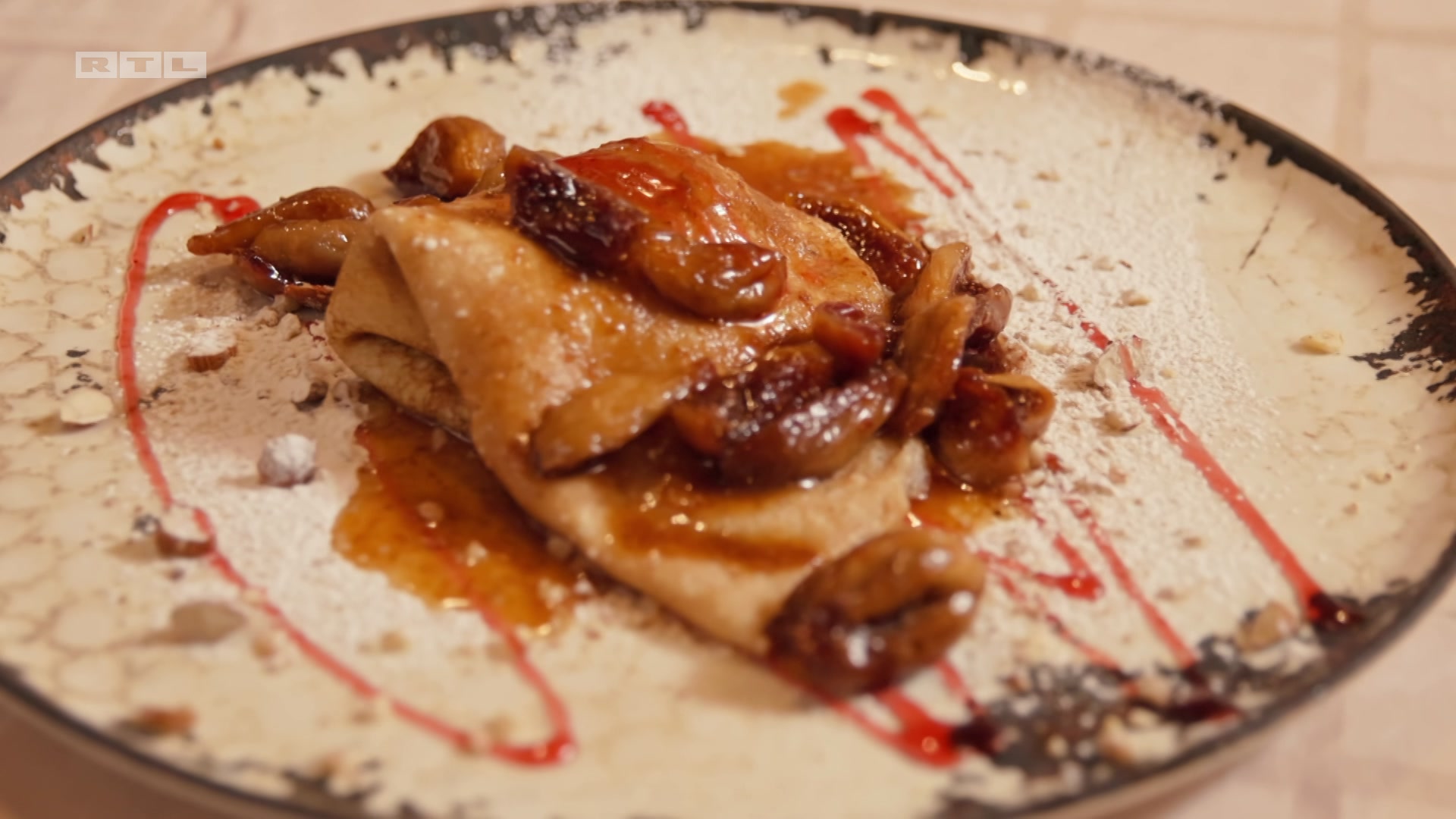 Nakon obilnog predjela i glavnog jela, bilo je vrijeme i za dekadentni desert. Jurica je kuglicu sladoleda zamotao u palačinku koju je poslužio na mrvljenim bademima i preljevom od jagoda, a na samu palačinku stavio je još i umak od smokvi.