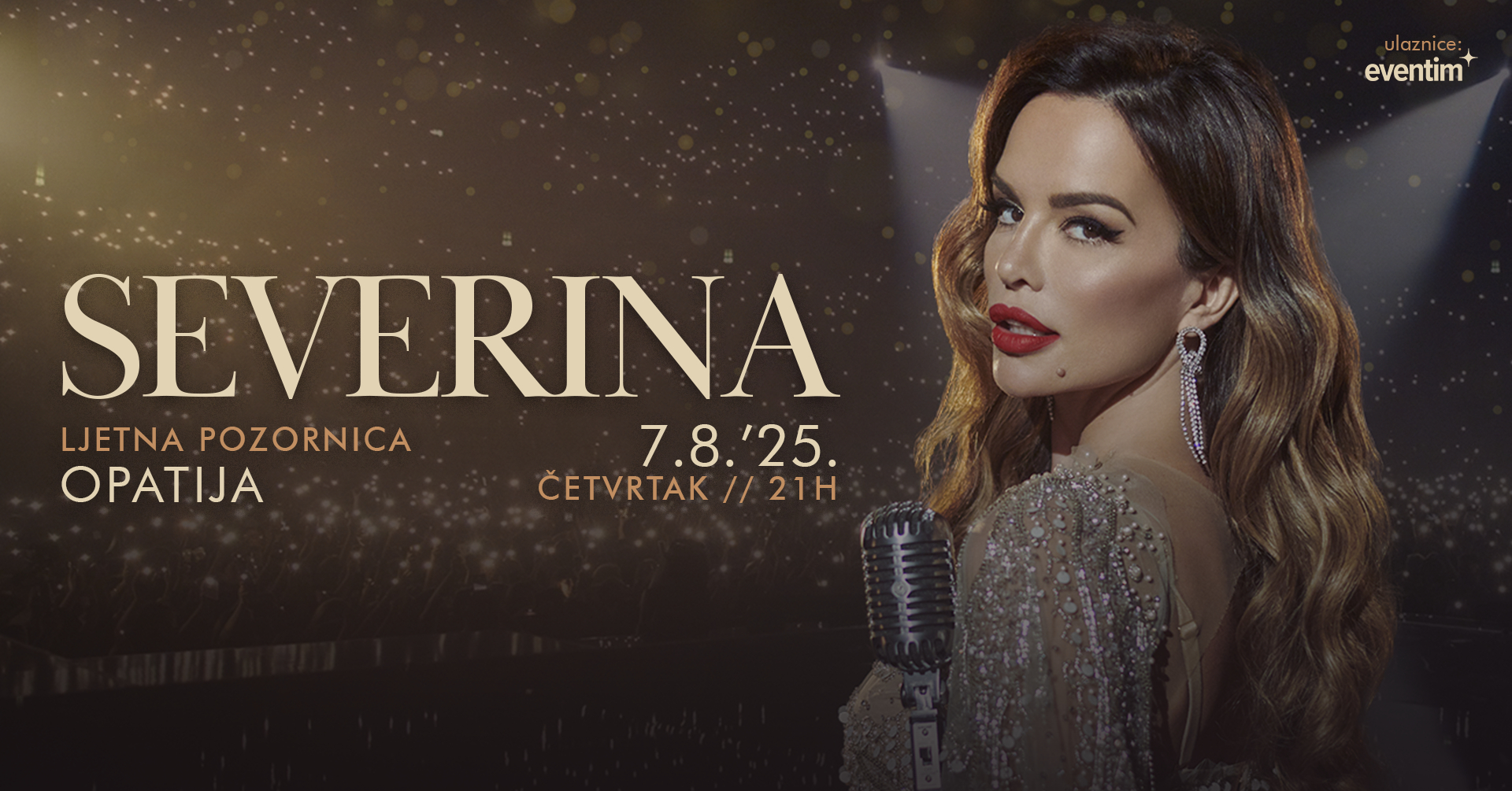 U jeku velike dvoranske turneje po Hrvatskoj, tijekom koje je sljedeći tjedan čeka već dva tjedna unaprijed rasprodan koncert u Karlovcu, Severina je publici najavila i veliki koncert na otvorenom. Nakon tri godine, ovog se ljeta, 07. kolovoza, vraća na veliku ljetnu pozornicu u Opatiji. Nastup na istom mjestu iz 2022. godine mnogima je, pa i samoj Severini, ostao u prekrasnom sjećanju, stoga ne čudi da se s nestrpljenjem čeka vratiti na jednu od najljepših i najatraktivnijih ljetnih pozornica na Mediteranu, onuopatijsku.