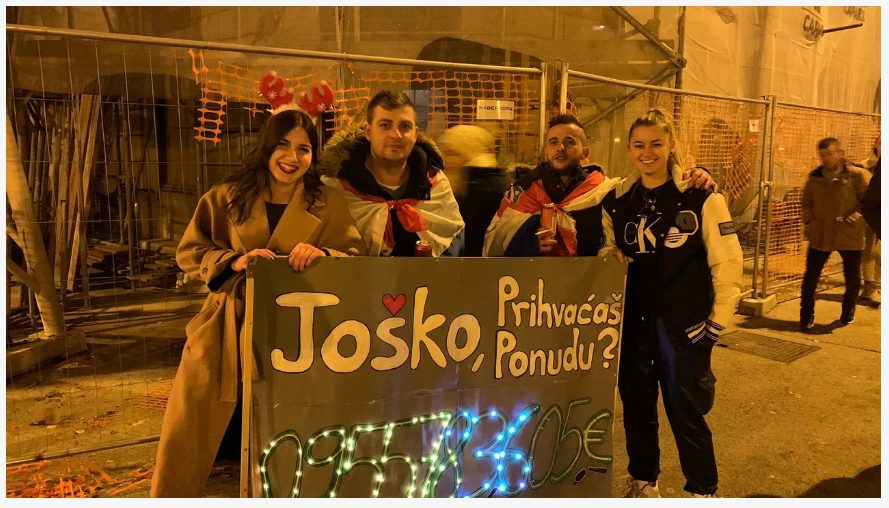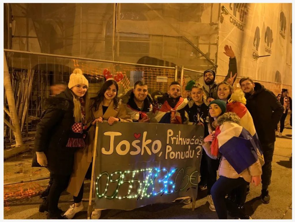 Na jednom od brojnih transparenata upućenih mladom braniču, ove su djevojke poručile: “Joško prihvaćaš ponudu? 0955783605€”.