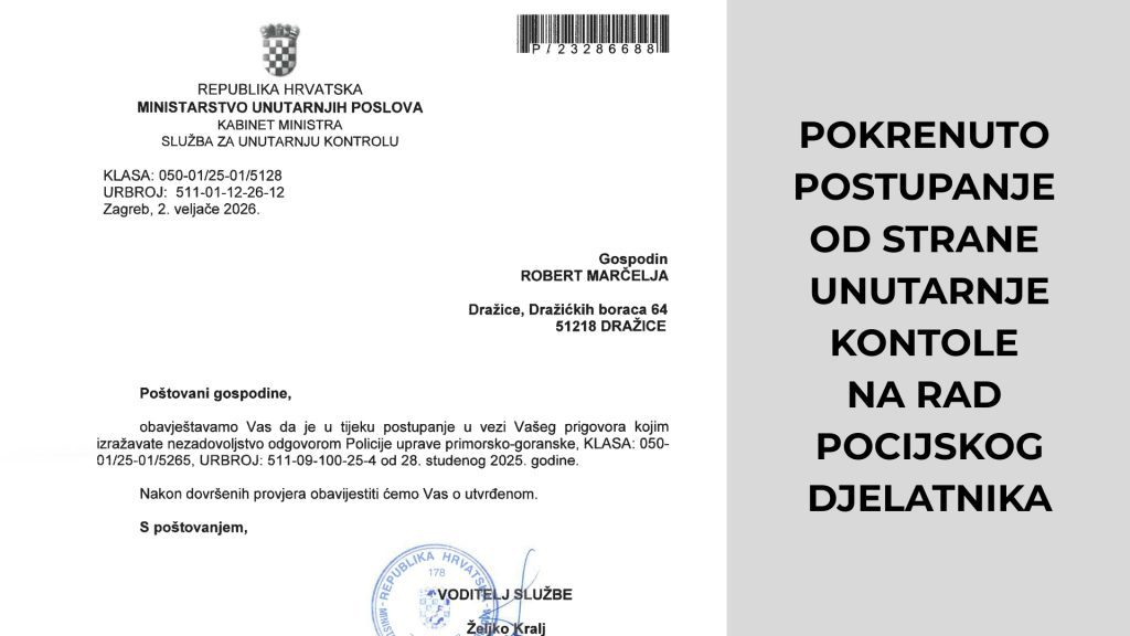 Nažalost, prvi odgovor koji sam dobio od načelnika Policijske uprave Harija Brnada bio je za rubriku vjerovali ili ne. Zbog nesuvislog odgovora obratio sam se ravnateljstvu policije i kabinetu Ministra unutarnjih poslova. Nakon toga pokrenuto je postupanje u vezi prigovora kojem sam izrazio nezadovoljstvo odgovorom Policijske uprave Primorsko goranske.