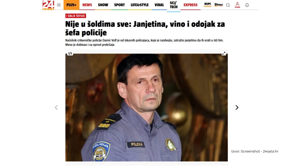 Ono što je objavio 24 sata pod naslovom: Nije u šoldima sve: Janjetina, vino i odojak za šefa policije Damira Volfa jasno daje uvid o kakvoj se osobi radi.