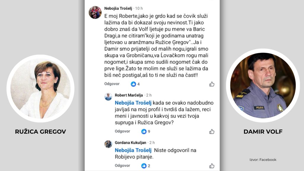 Postavio sam pitanje gospodinu Nebojši Trošelju: „kada se ovako nadobudno javljaš na moj profil i tvrdiš da lažem, reci meni i javnosti u kakvoj su vezi tvoja supruga i Ružica Gregov?“