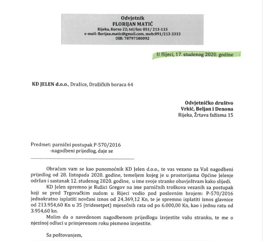 Objavljena je presuda Trgovačkog suda u Rijeci kojom se odbacuju svi zahtjevi Ružice Gregov protiv Općine Jelenje