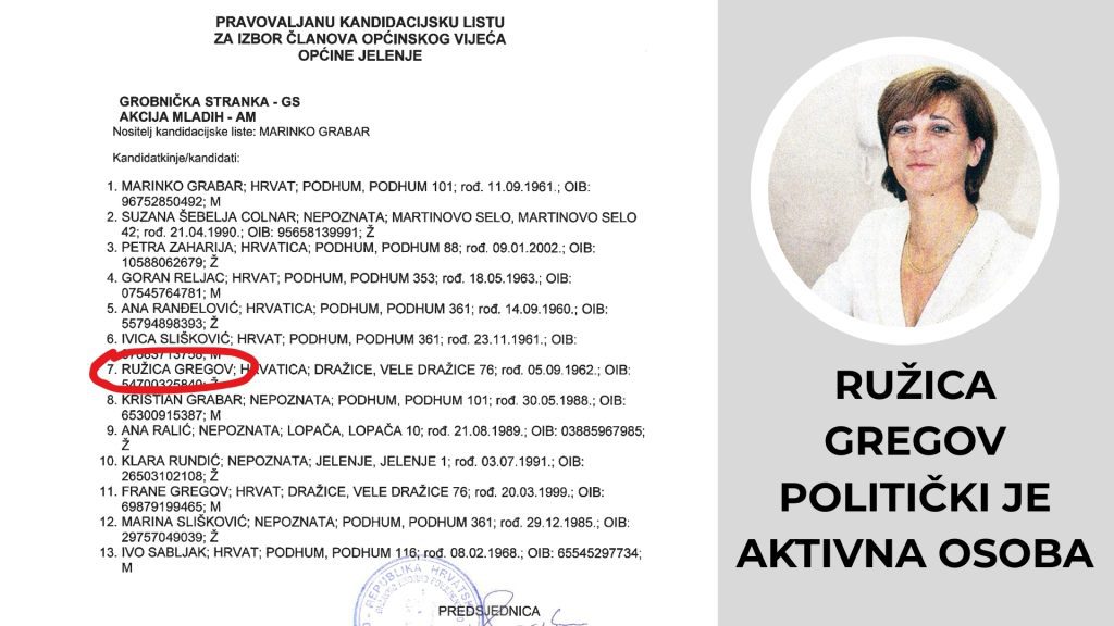Ne govorimo o osobi izvan političkog prostora, riječ je o politički aktivnoj osobi u našoj zajednici, višestrukoj kandidatkinji na listama za Općinsko vijeće.