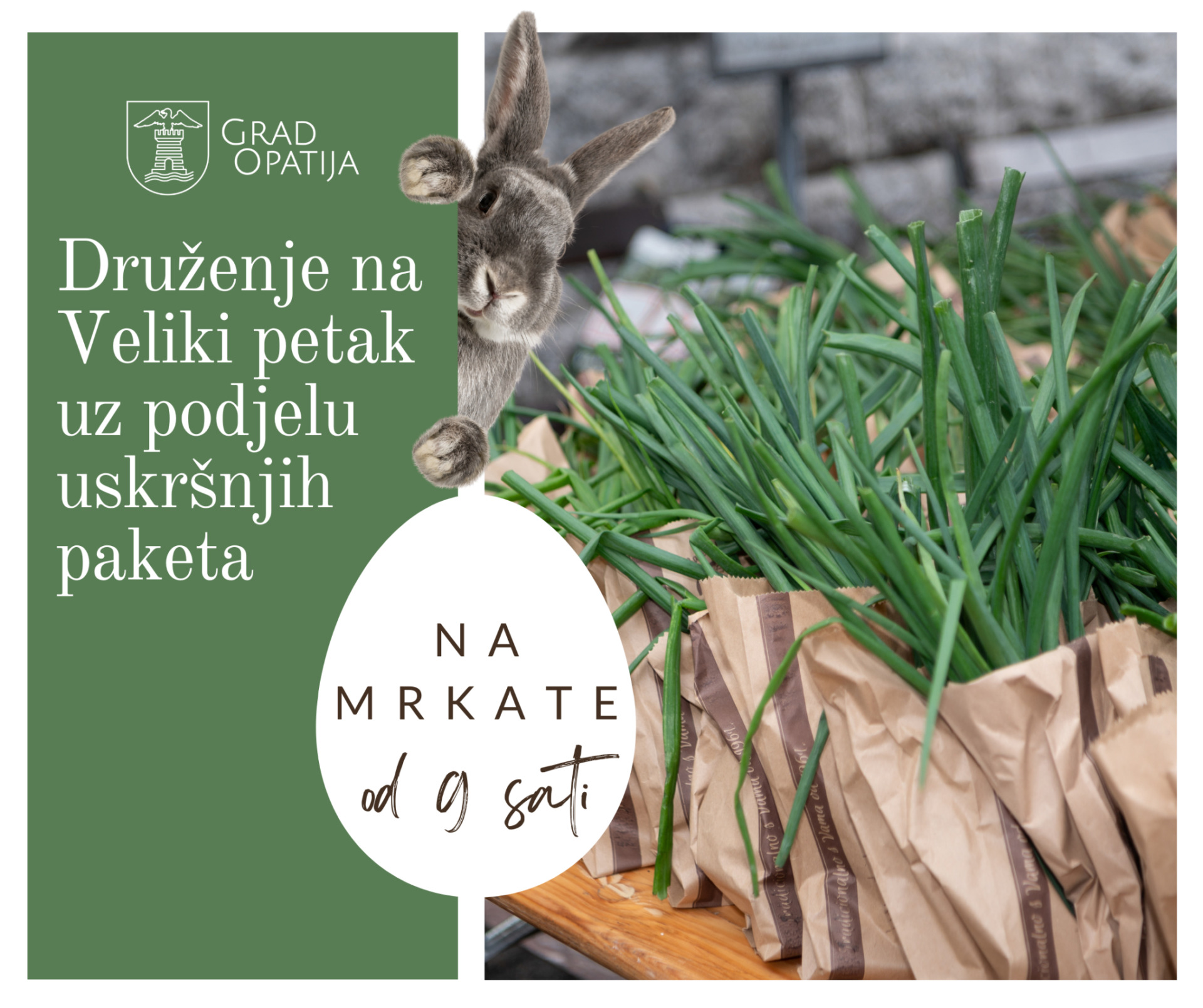 U ozračju nadolazećeg Uskrsa, Grad Opatija poziva sve svoje građanke i građane na blagdansko druženje s gradonačelnikom Fernandom Kiriginom i zamjenicom Kristinom Đukić koje će se održati na Veliki petak, 18. travnja, s početkom u 9 sati, ispred opatijske tržnice – Mrkata.