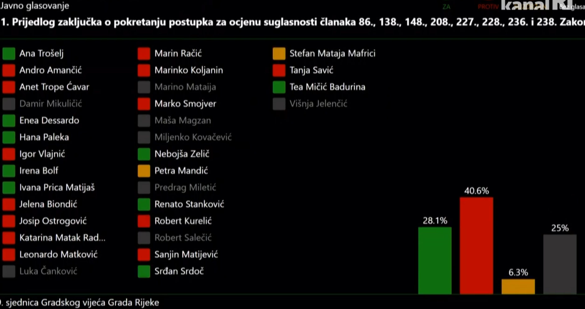 Riječki gradski vijećnici na izvanrednoj tematskoj sjednici odbili su prijedlog klubova vijećnika SDP-a, Možemo!, PGS-a, Liste za Rijeku i IDS-a o podnošenju zahtjeva za ocjenu ustavnosti Zakona o prostornom uređenju.