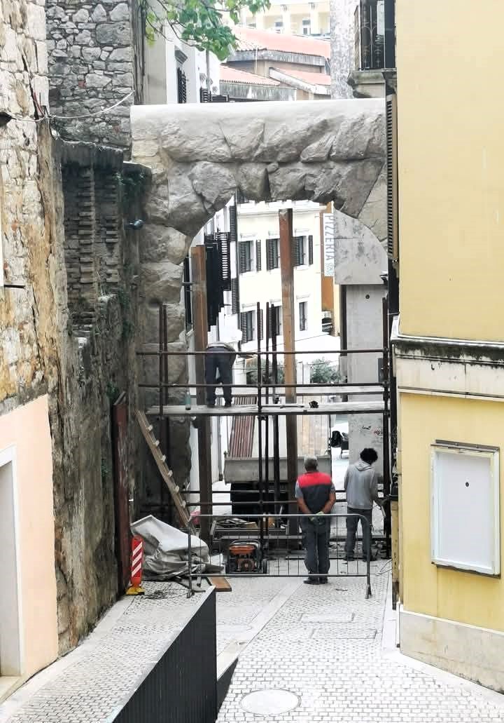„Stara vrata, poznata i kao Rimski luk, najstariji sačuvani arhitektonski spomenik Rijeke, nakon pet godina navodne obnove završio je – premazan cementom. Takva intervencija ne može se nazvati ni zaštitom ni konzervacijom. Ona predstavlja ozbiljnu devastaciju.