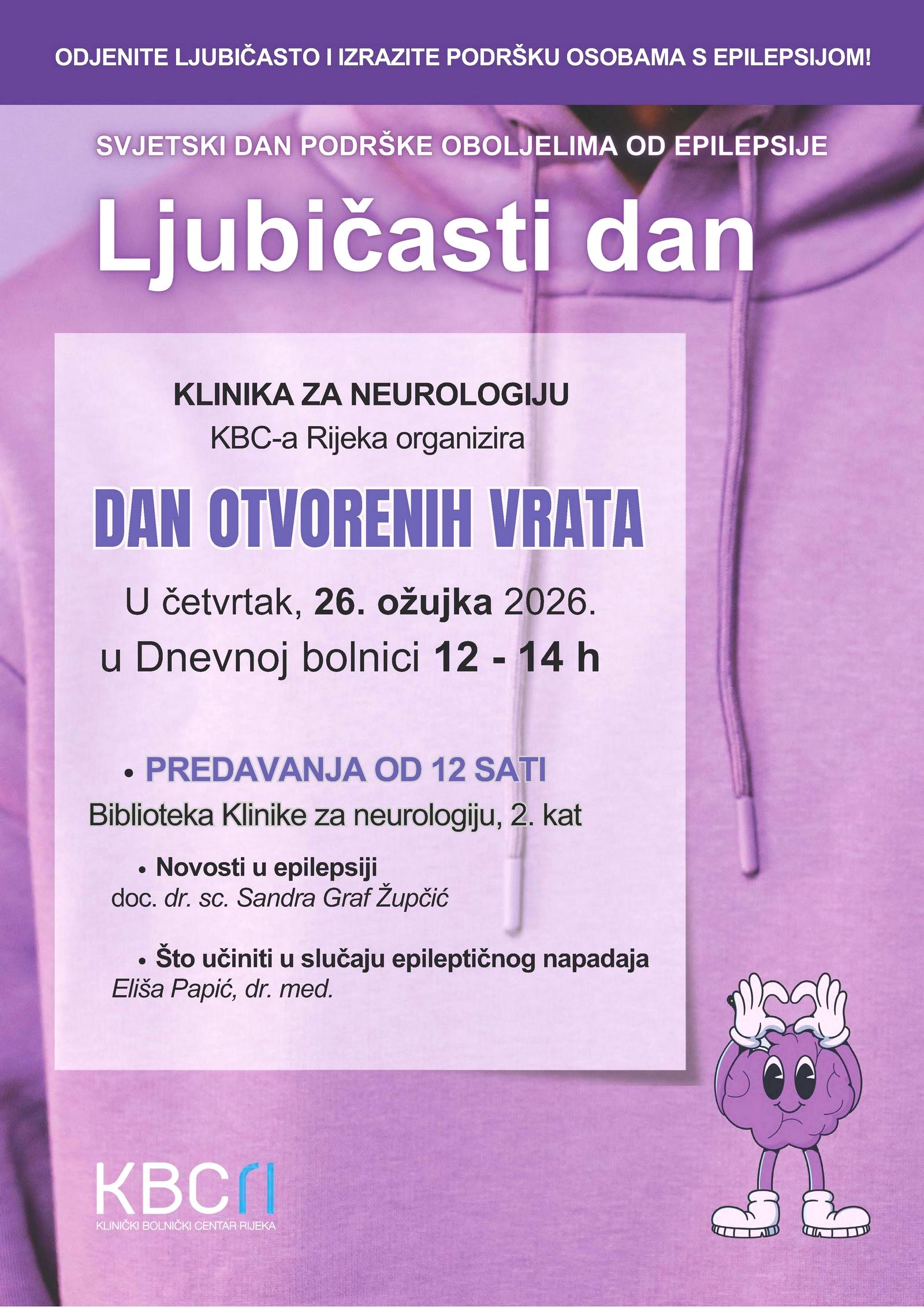 Ovogodišnje obilježavanje Ljubičastog dana, međunarodnog dana posvećenog pružanju podrške osobama s epilepsijom, održat će se u četvrtak, 26. ožujka 2026. godine, na Klinici za neurologiju KBC-a Rijeka.