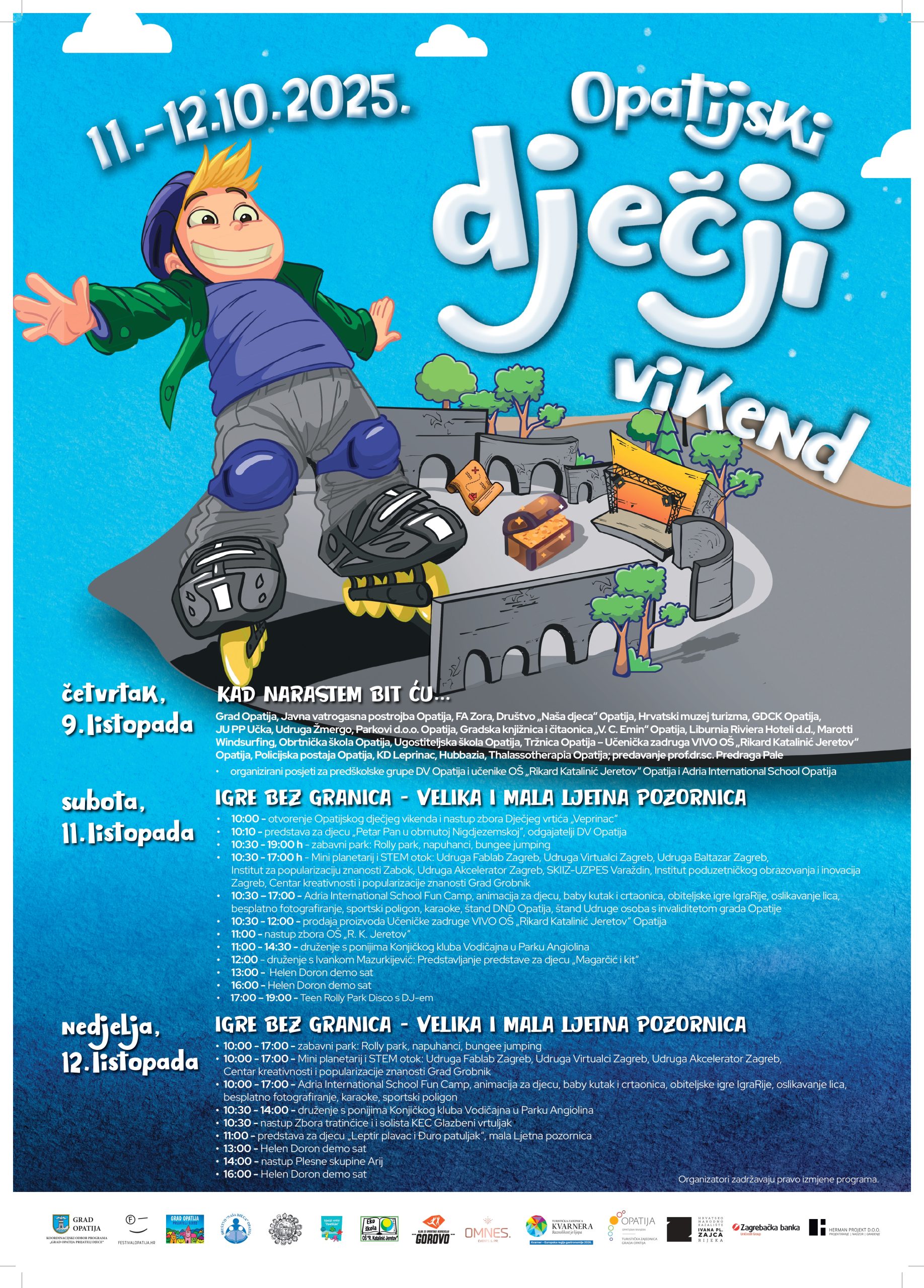 – Veliko mi je zadovoljstvo što mogu najaviti još jedan Opatijski dječji vikend, manifestaciju koja već godinama donosi veselje, kreativnost i igru u naš grad. Krećemo već u četvrtak, 9. listopada, kroz edukativni program Kad narastem, bit ću…, u kojem će djeca imati priliku upoznati vatrogasce, policajce, zdravstvene djelatnike, sportaše, kulturne i turističke djelatnike, ali i naše kuhare i konobare. Posebna vrijednost programa je uključivanje ugostiteljske i turističke struke te predstavljanje projekta Kvarner – Europska regija gastronomije 2026. Djeci tako želimo pokazati ljepotu i važnost različitih zanimanja i pružiti im inspiraciju za budućnost, istaknula je Đukić.