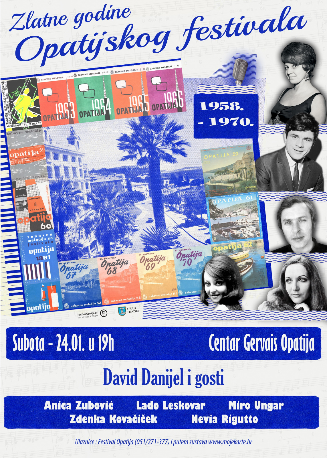 U Centru Gervais u subotu, 24. siječnja, održat će se tradicionalni koncert Davida Danijela s gostima, koji je ove godine posvećen zlatnim godinama Opatijskog festivala – razdoblju od 1958. do 1970. godine.
