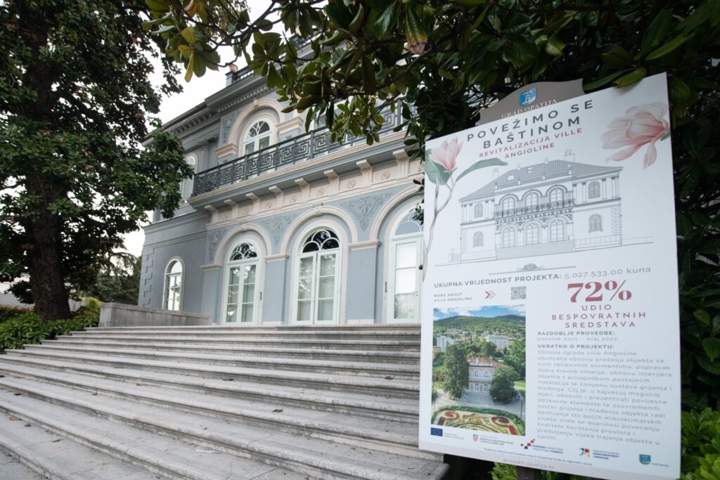 Obnova opatijske Ville Angioline dio je projekta „Povežimo se baštinom“ Urbane aglomeracije Rijeka. Projekt je usmjeren prema zajedničkoj viziji lokalnih samouprava Riječke aglomeracije u razvoju prepoznatljive i jedinstvene kulturne baštine urbanog područja uz poticanje turističkog razvoja na načelima održivosti te okuplja 13 fizičkih lokacija kulturno-povijesne baštine na području UA Rijeka, karakterističnih za svako lokalno područje.