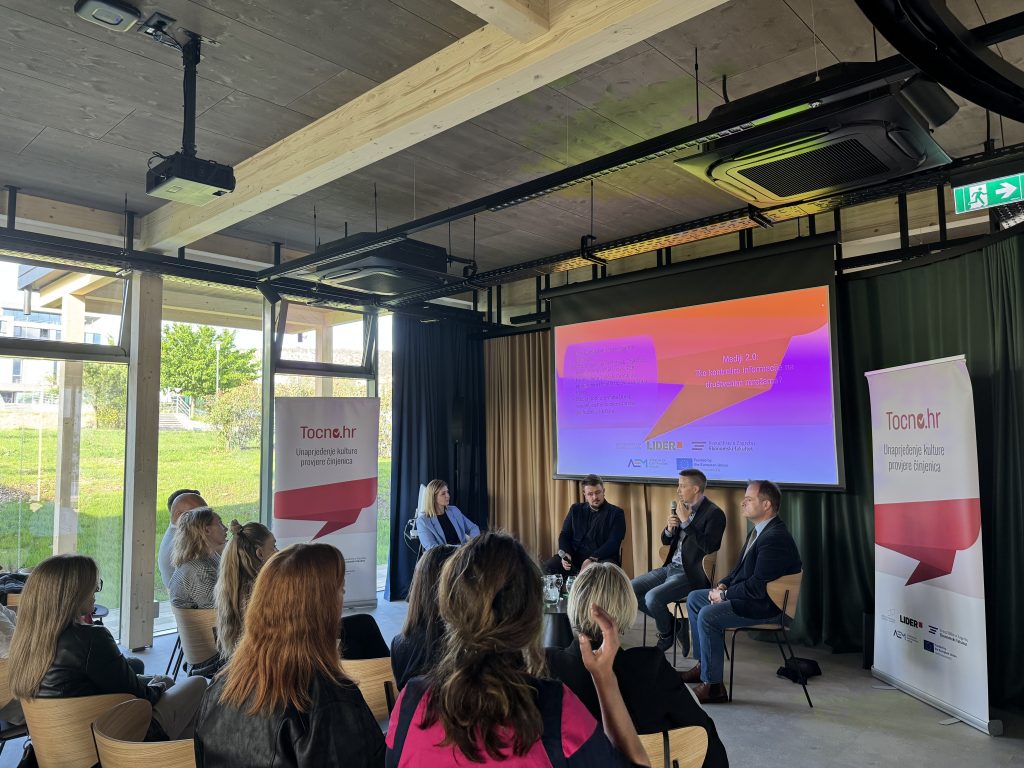 Okrugli stol održan je u sklopu projekta „Unaprjeđenje kulture provjere činjenica – TOČNO“, koji sufinancira Europska unija, a provodi se u partnerstvu s Lider Media i Ekonomskim fakultetom Sveučilišta u Zagrebu, s ciljem borbe protiv dezinformacija i jačanja otpornosti društva.
