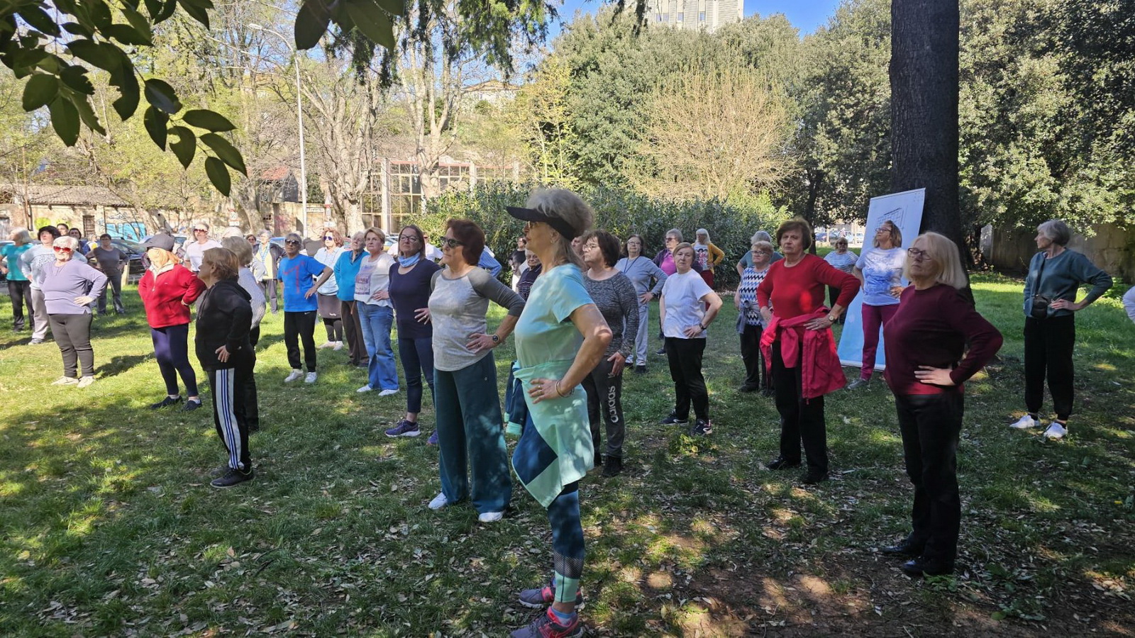 Grupno vježbanje u parku Zvonimira Škerla dio je programa „Kretanjem do zdravog starenja – U mirovini, ali u pokretu“ koji se temelji na provođenju strukturiranih, sigurnih i dobi prilagođenih grupnih vježbi u prostorima pojedinih mjesnih odbora Grada Rijeke.