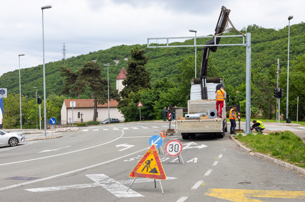 Da postaviti semafor nije samo tako – dokazali su nam danas izvođači radova na lokaciji Škurinjska cesta u blizini OŠ “Ivan Zajc”