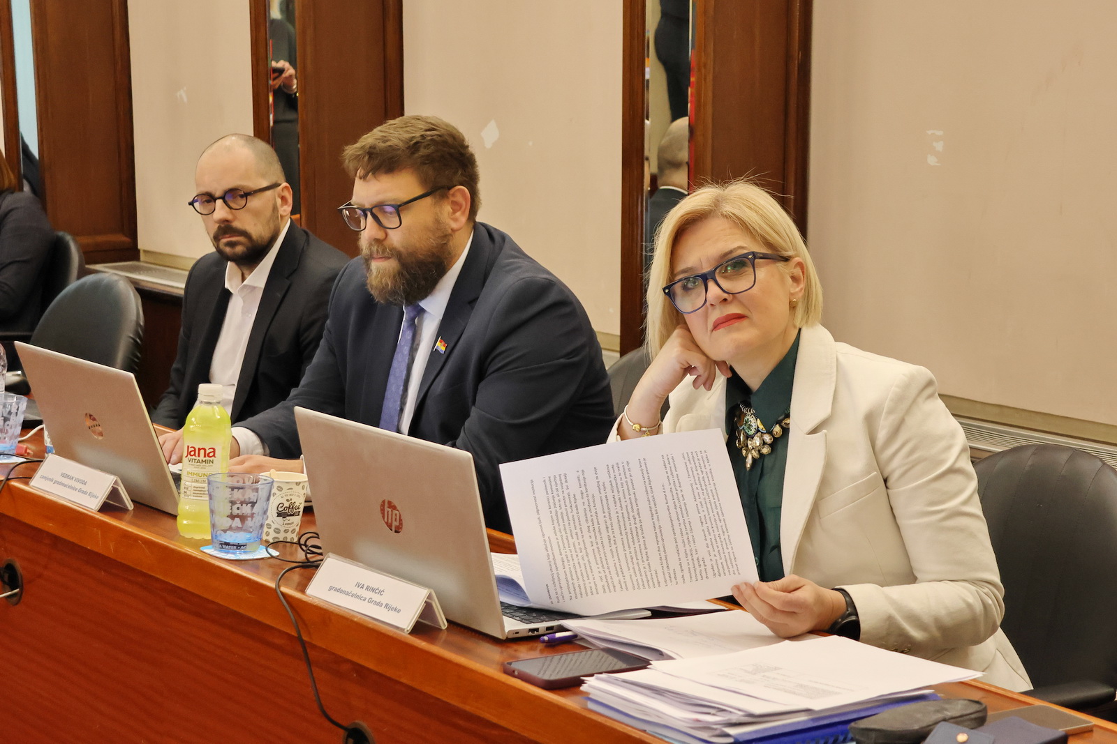 Na samom početku sjednice predsjednik Gradskog vijeća Robert Kurelić izvijestio je da je, prema odluci riječkog HDZ-a, Katarina Matak Radoš postala nova članica Kluba vijećnika HDZ-a, umjesto dosadašnjeg vijećnika Alena Ružića.