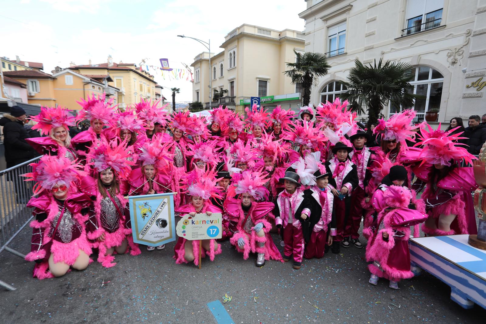 Povorka je započela točno u podne, a otvorilo ju je Dječje gradsko vijeće Grada Opatije, predvođeno dječjim gradonačelnikom Mihaelom Šorićem, s maskom „Djeca – zagovaratelji dječjih prava“. Tradicionalnu rutu od gradske tržnice do Slatine pratili su Puhački orkestar Lovran te male mažoretkinje Opatijske rivijere, Nedelišća i Pule.