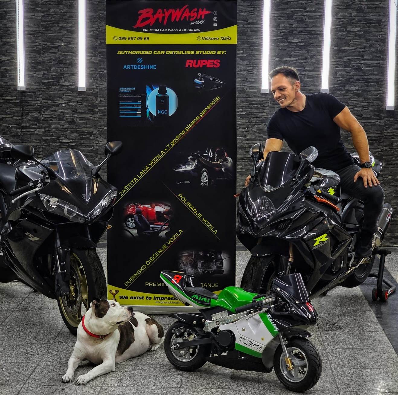 Osim automobila, Max je dugogodišnji zaljubljenik u motocikle i sam aktivni vozač, pa se ta strast prirodno prenijela i u Baywash. Motociklima se pristupa s istom razinom preciznosti i perfekcionizma kao i najskupljim automobilima, uz specijalizirane detailing tretmane.