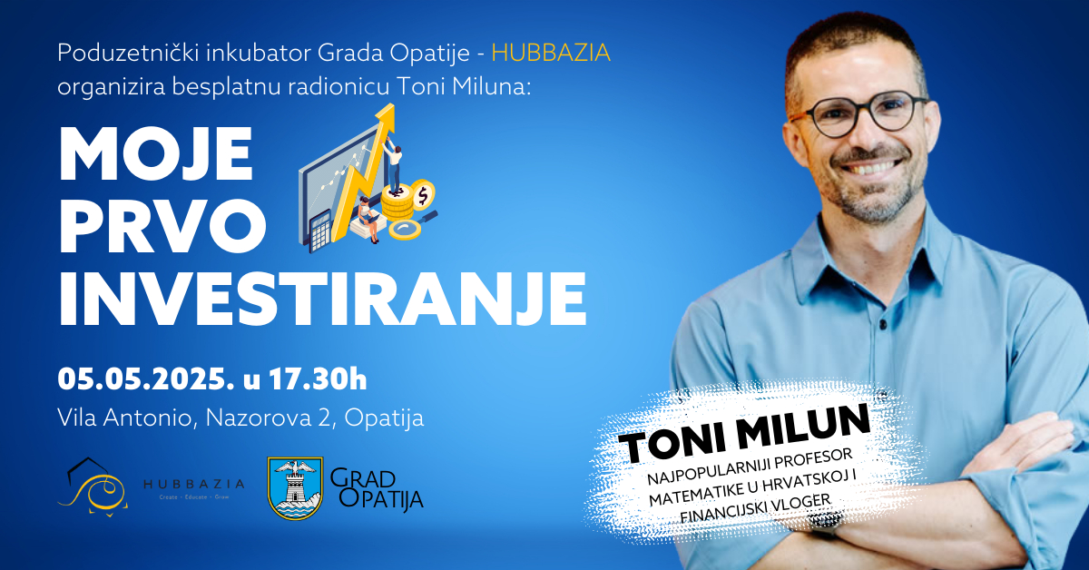 Poduzetnički inkubator Hubbazia nastavlja s edukacijama koje osnažuju financijsku pismenost građana, posebno mladih. Nova radionica pod nazivom “Obogati se znanjem 2 – Moje prvo investiranje” održat će se 5. 5. 2025. u 17:30h u Vili Antonio (Nazorova 2, Opatija) s ciljem pružanja konkretnih znanja i alata za pametno i odgovorno upravljanje osobnim financijama.