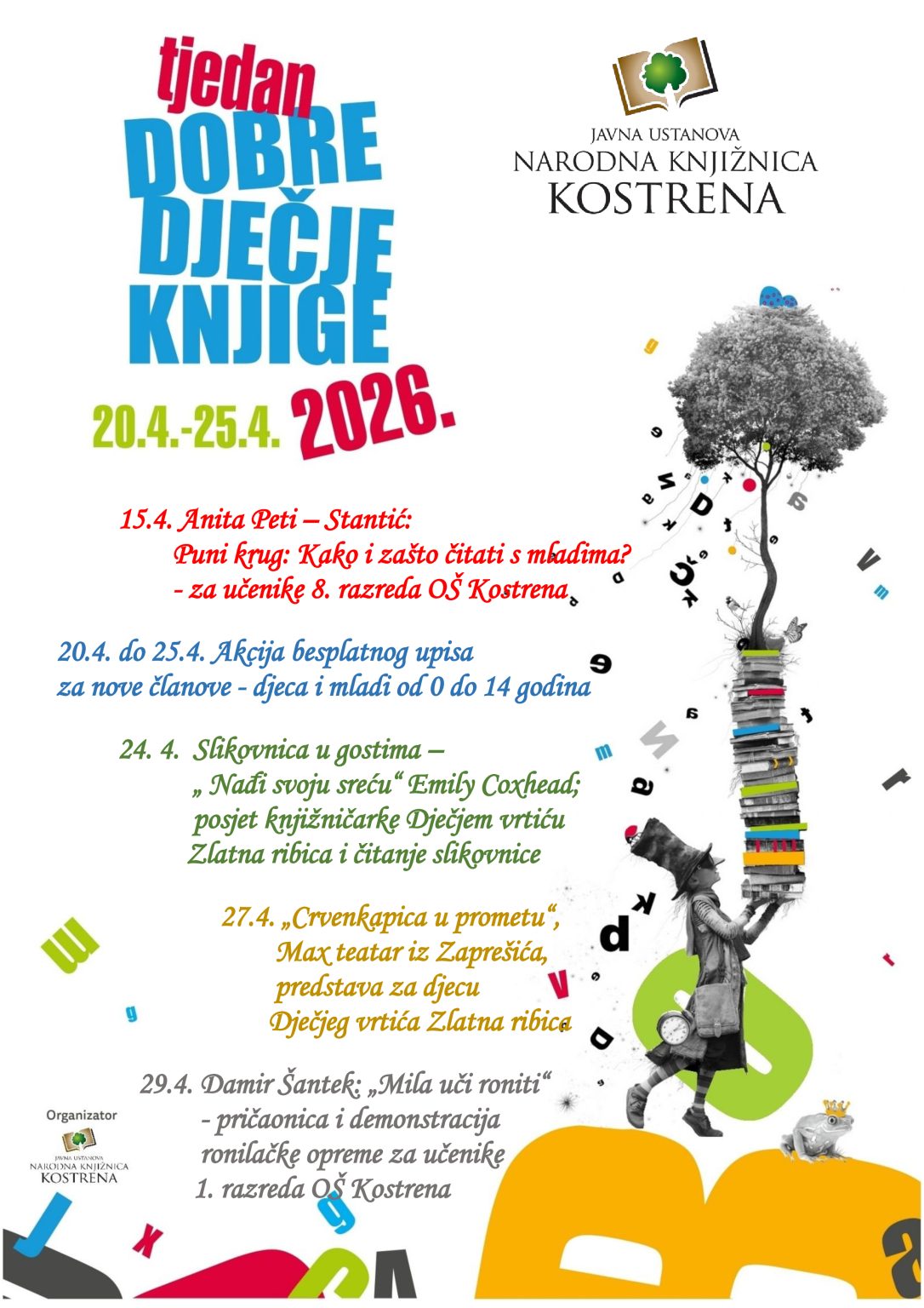 Tjedan dobre dječje knjige stiže u Knjižnicu Kostrena već 14. put. Kao najvažnija regionalna manifestacija posvećena dječjoj knjizi i kulturi čitanja, ovaj tjedan okuplja djecu, roditelje i sve koji vjeruju u moć dobre priče.
