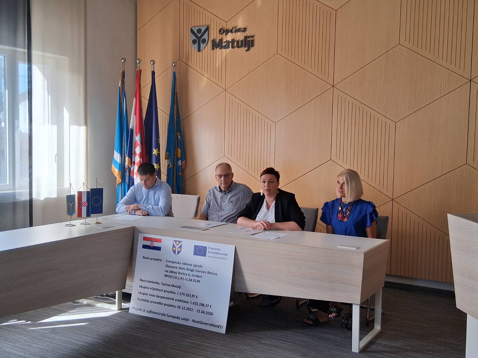 U sklopu provedbe projekta „Energetska obnova zgrade Osnovne škole Drago Gervais Brešca“, a po provedenom postupku javne nabave i donošenju Odluke o odabiru izvođača, danas, 5. rujna 2025. godine, u općinskoj vijećnici Općine Matulji održano je potpisivanje Ugovora o izvođenju radova na energetskoj obnovi zgrade Osnovne škole Drago Gervais Brešca na adresi Brešca 6, Jurdani, s izvođačem radova Izgradnja d.o.o. Crikvenica.