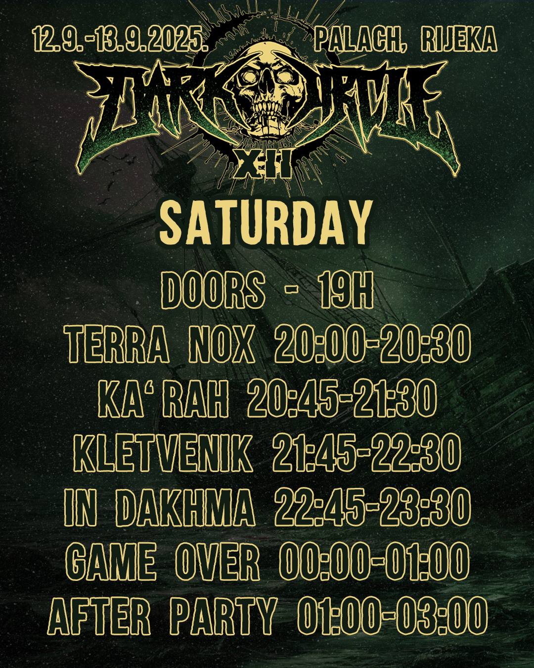 Dark Circle Fest (poznat i kao DarkO Fest) u organizaciji Udruge Ri Rock vraća se u Klub Palach na svoje 12. izdanje, okupljajući ljubitelje metala iz cijele regije. Festival će se održati u petak i subotu, 12. – 13. rujna 2025. u Klubu Palach u Kružnoj ulici.