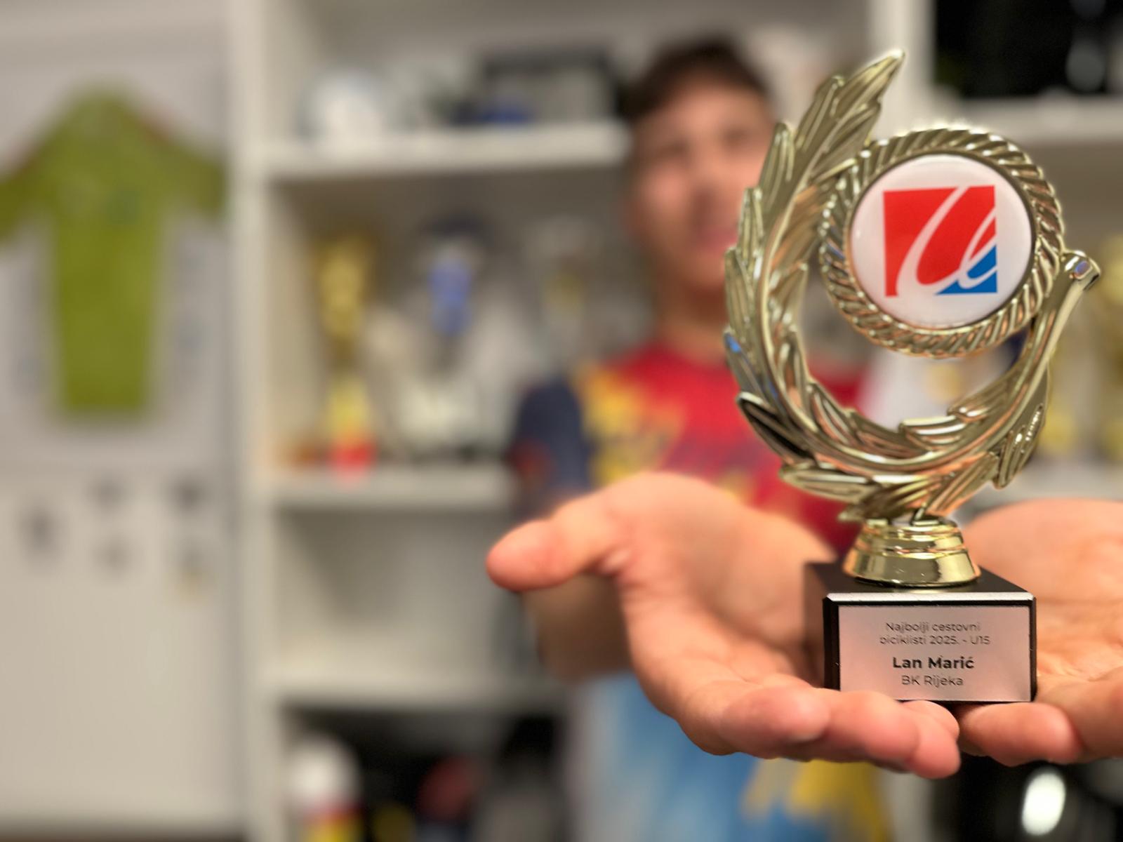 Mladi riječki biciklist Lan Marić ponovno je primio priznanje Hrvatskog biciklističkog saveza za najboljeg cestovnog biciklista Hrvatske za sezonu 2025., ovoga puta u kategoriji do 15 godina