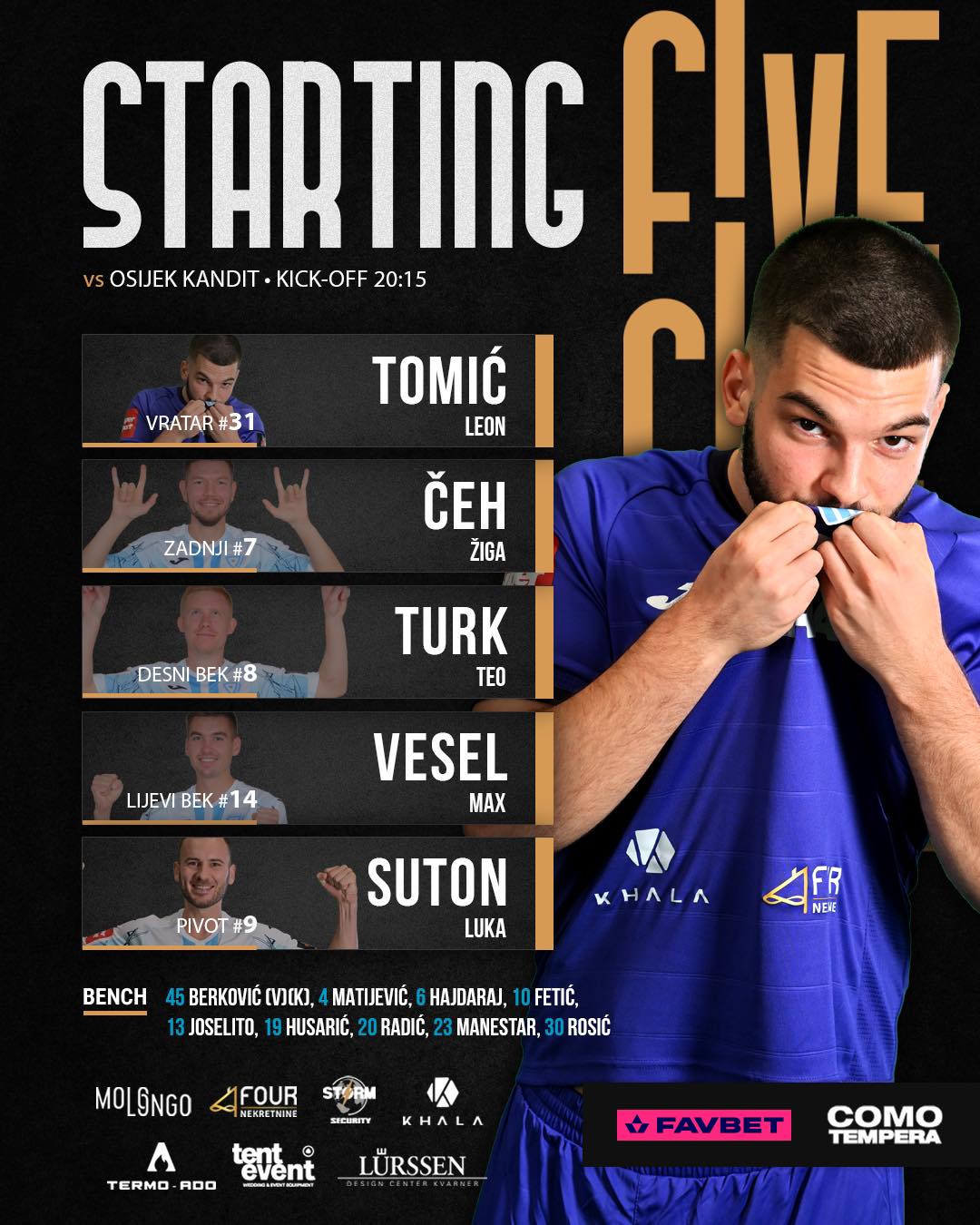 RIJEKA: Tomić, Turk, Čeh, Vesel, Suton, Berković (C), Matijević, Hajdaraj, Fetić, Joselito, Husarić, Radić, Manestar, Rosić