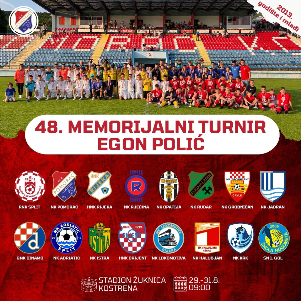 Memorijalni turnir Egon Polića već gotovo pet desetljeća okuplja mlade nogometaše, njihove trenere i obitelji te na poseban način njeguje uspomenu na prerano preminulog igrača Pomorca Egona Polića.