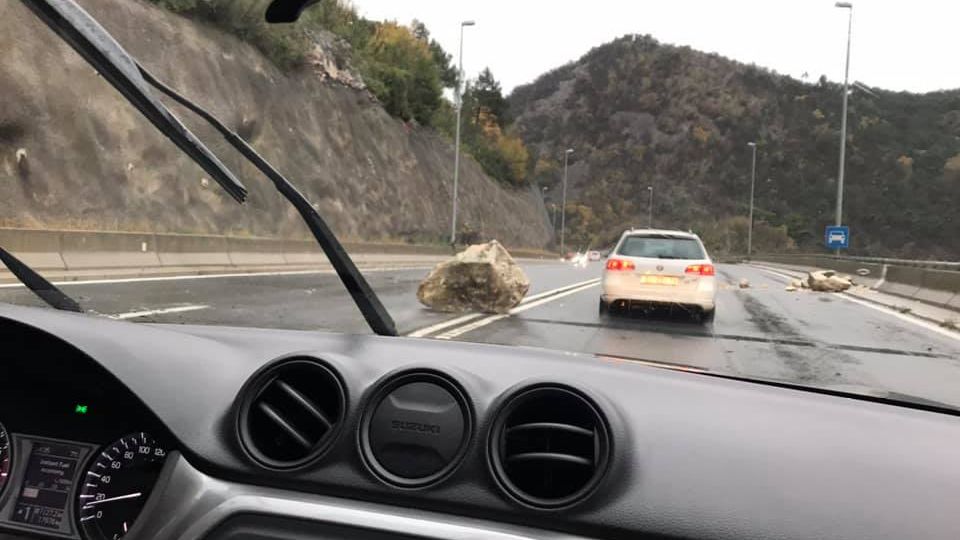 OPREZ! Odron kamenja na riječkoj zaobilaznici kod izlaza Vežica