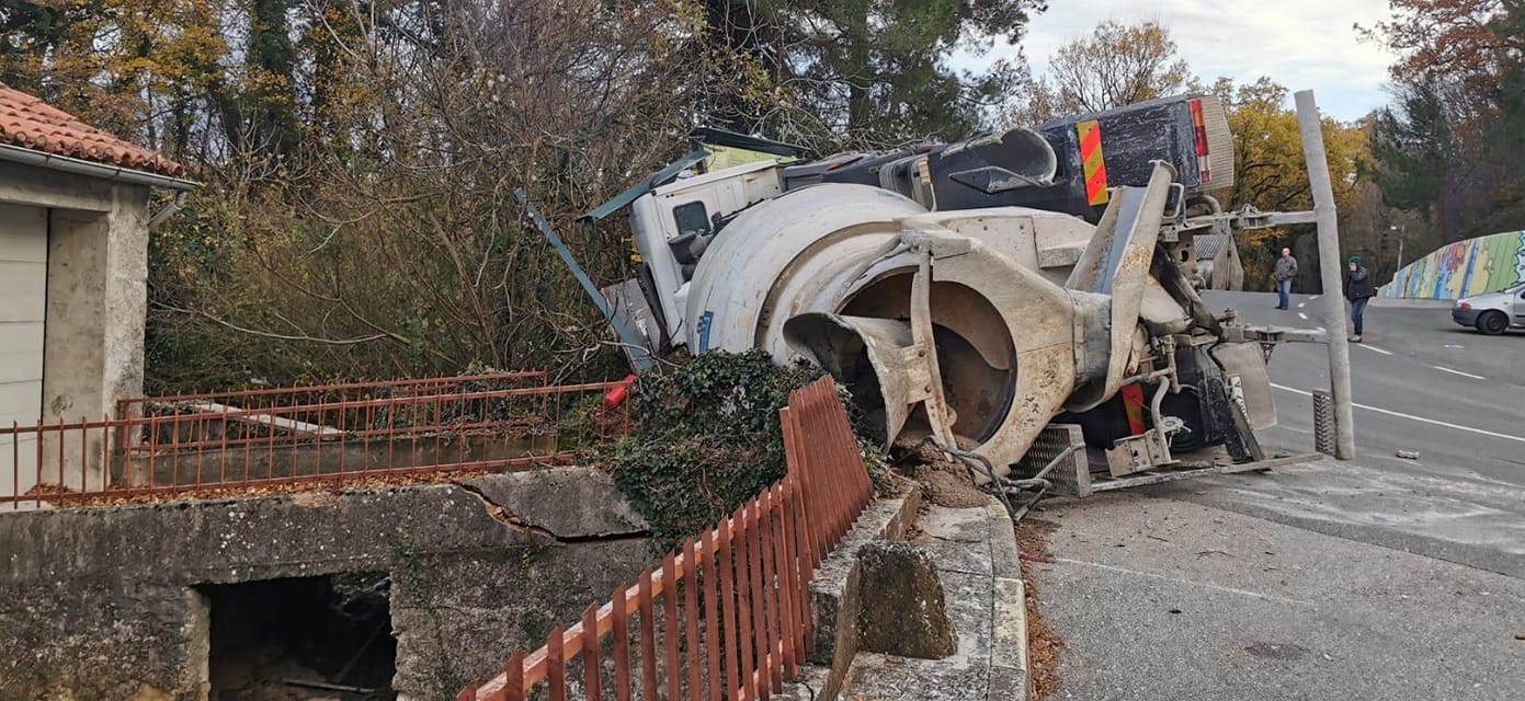 STRAŠNA NESREĆA NA KRKU: Prevrnuo se kamion-miješalica, vatrogasci spašavali vozača iz zdrobljene kabine