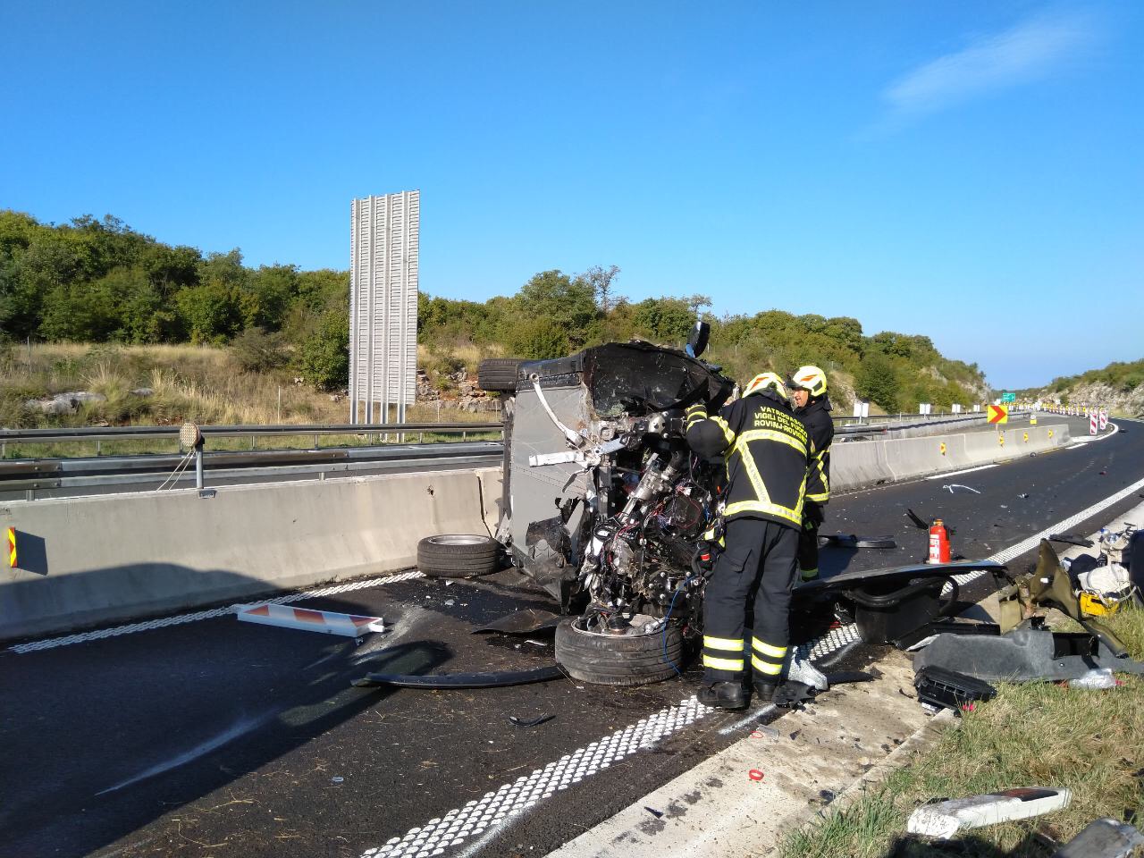 (UZNEMIRUJUĆE FOTOGRAFIJE) Bolje da ovo ne vidite uživo: Evo što je ostalo od “Tesle” koja se u Istri zabila u ogradu
