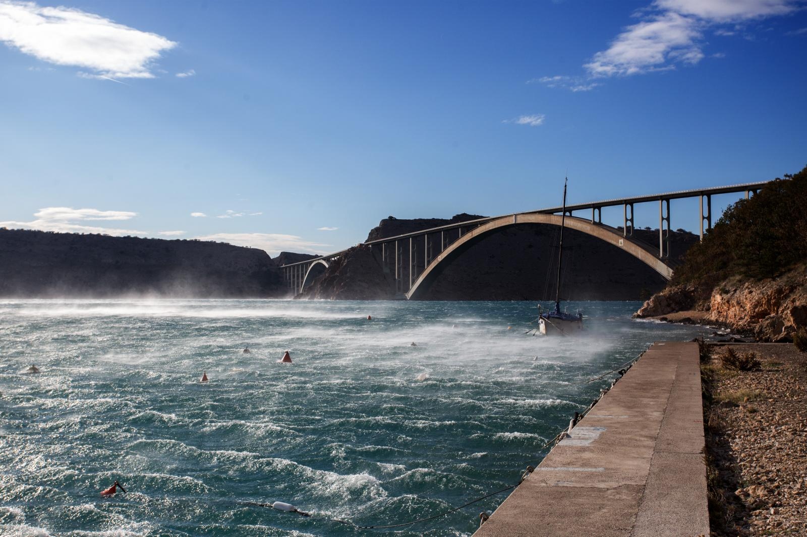 Zbog jakog vjetra na Jadranskog magistrali i Krčkom mostu zabranjen promet za određene skupine vozila!