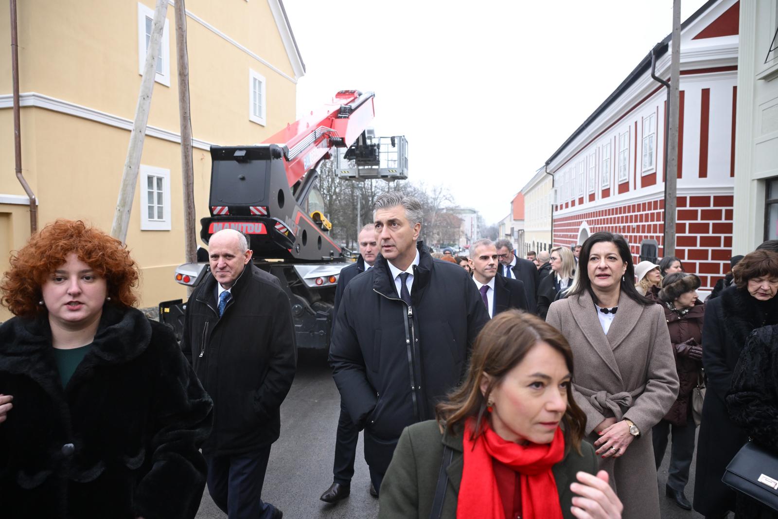 22.12.2025., Sisak – Premijer Andrej Plenkovic sa suradnicima prošetao kulturno-povijesnim centrom Petrinje. Branko Bacic, Mihael Juric, Andrej Plenkovic, Magdalena Komes, Mirjana Oluic Photo: Igor Soban/PIXSELL