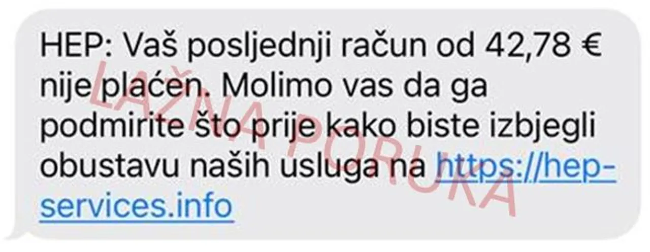 Hrvatska elektroprivreda (HEP) upozorava da u posljednje vrijeme kupci i korisnici HEP-a zaprimaju brojne lažne poruke putem SMS-a i elektroničke pošte u kojima se kao pošiljatelj lažno navodi ta tvrtka.