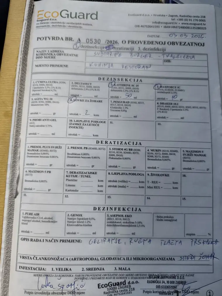 “Dezinsekciju provodimo interno daleko iznad zakonskog minimuma. Točnije, pojačane mjere dezinsekcije, samo ove godine, provedene su 23.1., 9.2. te 3.3.. metodom vlažne aplikacije te geliranjem (aplikacija insekticida u obliku gela). Također su postavljene kontrolne lovke za žohare”, pojasnili su.