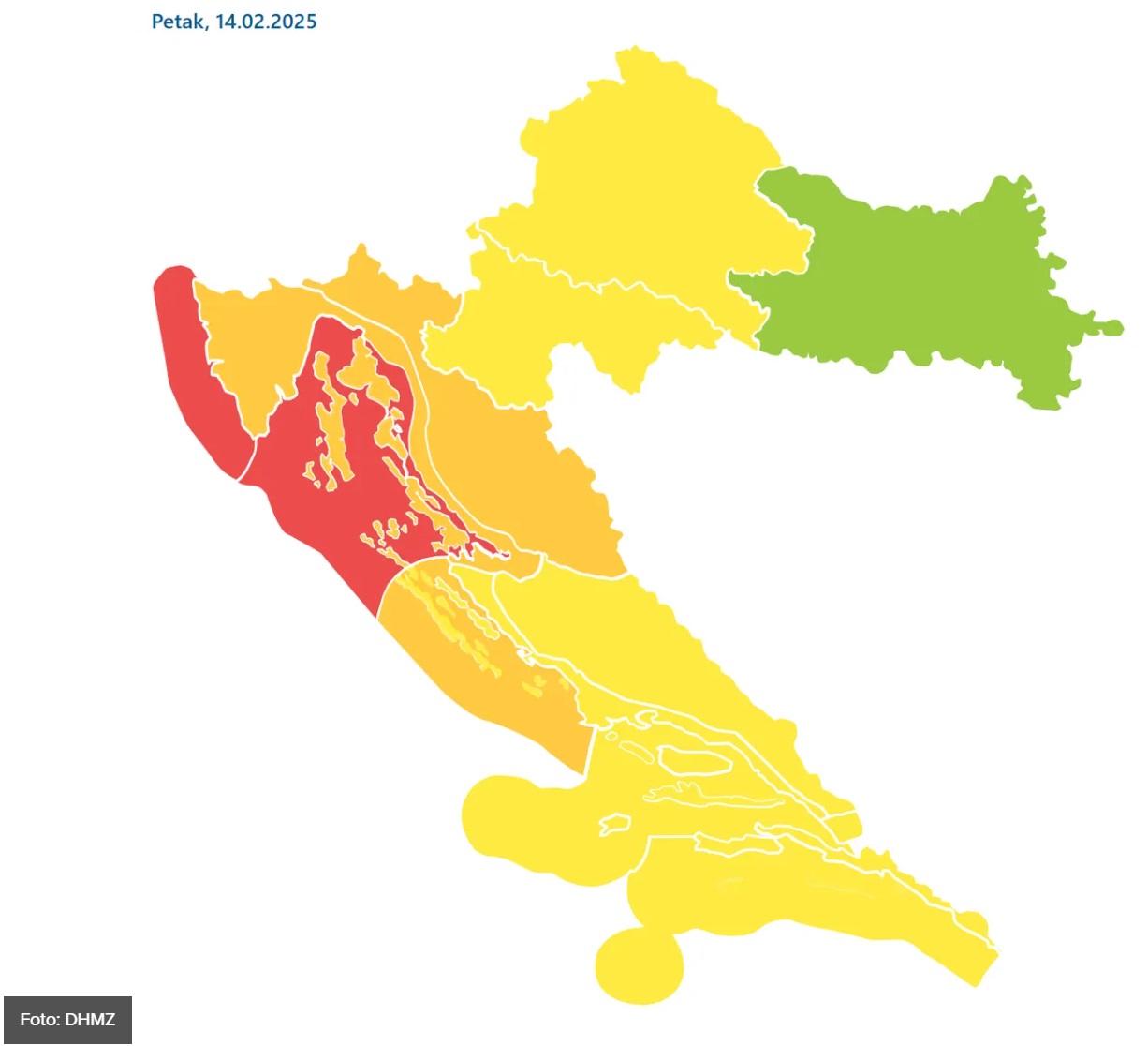 DHMZ javlja da bi u unutrašnjosti Hrvatske, osobito u nizinama, mogla nastati gusta magla koja dodatno smanjuje vidljivost i otežava promet. Očekuje se i nastavak jakih vjetrova na obali, uz mogućnost orkanskih udara podno Velebita, piše Net.hr.