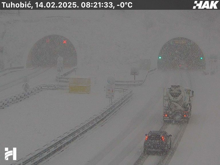Kolnici su mokri i skliski u većem dijelu zemlje, a u Gorskom kotaru i Lici pada snijeg, što dodatno otežava vožnju. Ponegdje ima i magle, a na cestama gdje su u tijeku radovi mogući su zastoji i vožnja u koloni.