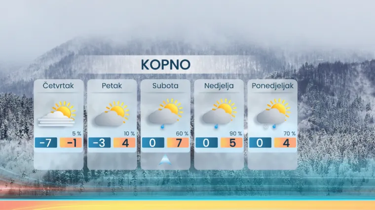 Još će u četvrtak na kopnu jutro biti iznimno hladno, a porast temperature slijedi od petka, za vikend uz minimalce oko ili barem malo iznad nule, osobito u subotu uz južni i jugozapadni vjetar.