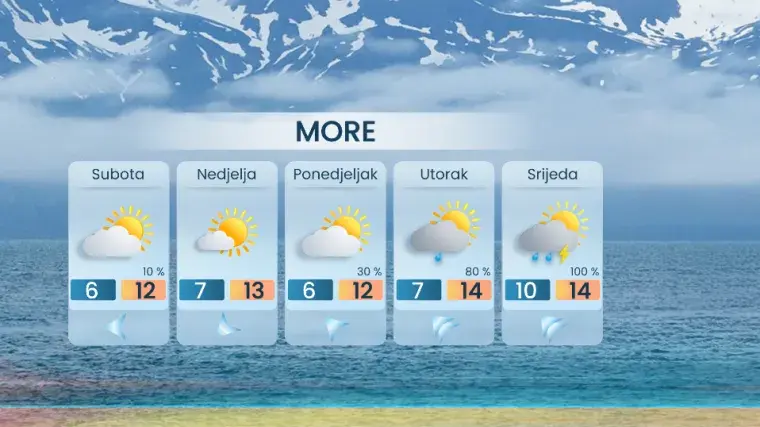 Na sjevernom Jadranu znatno više sunčanih razdoblja uz slabu do umjerenu buru, pod Velebitom s jakim udarima. Duž ostatka obale slaba do umjerena tramontana. Jutro inače malo hladnije, bit će u unutrašnjosti između 0 i 4 °C, a na Jadranu od 5 do 10 °C.